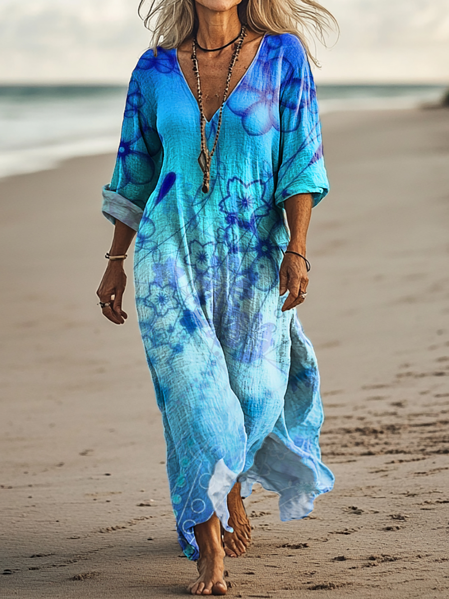 Damska bawełniana sukienka z kieszeniami i nadrukiem kwiatowym w stylu vintage